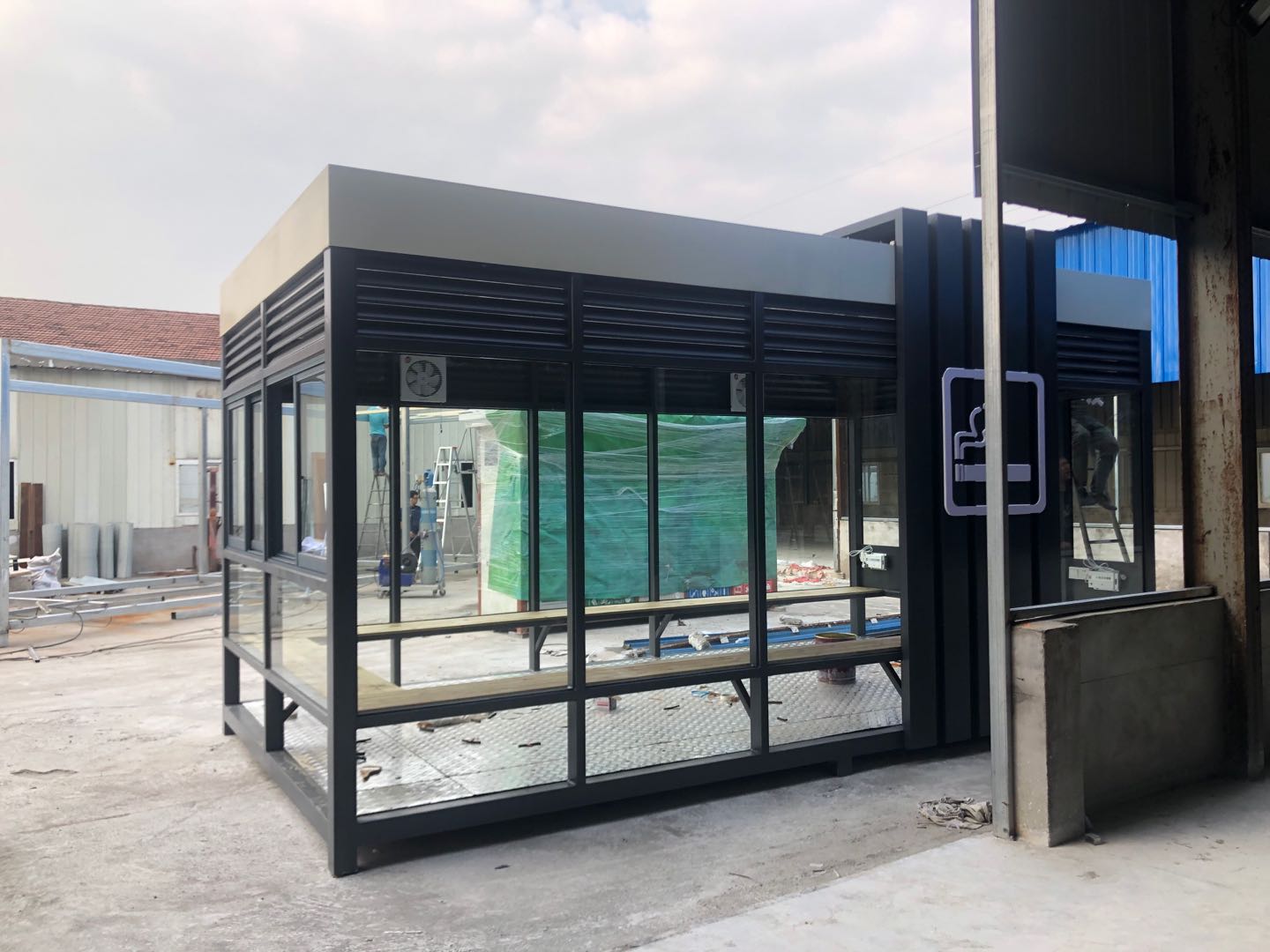 發(fā)往四川廣安利爾化學(xué)吸煙亭,造型時(shí)尚,贈(zèng)送兩個(gè)電子點(diǎn)煙器