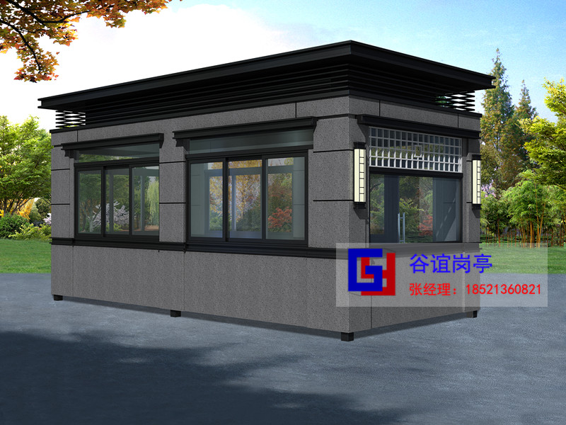 真石漆保安崗?fù)て渫鈮Σ捎梅朗墓に,更大程度上接近防土建工藝,又能夠滿足工廠生產(chǎn),成品運輸,可移動不違建,報批審批流程快捷簡單,易通過。